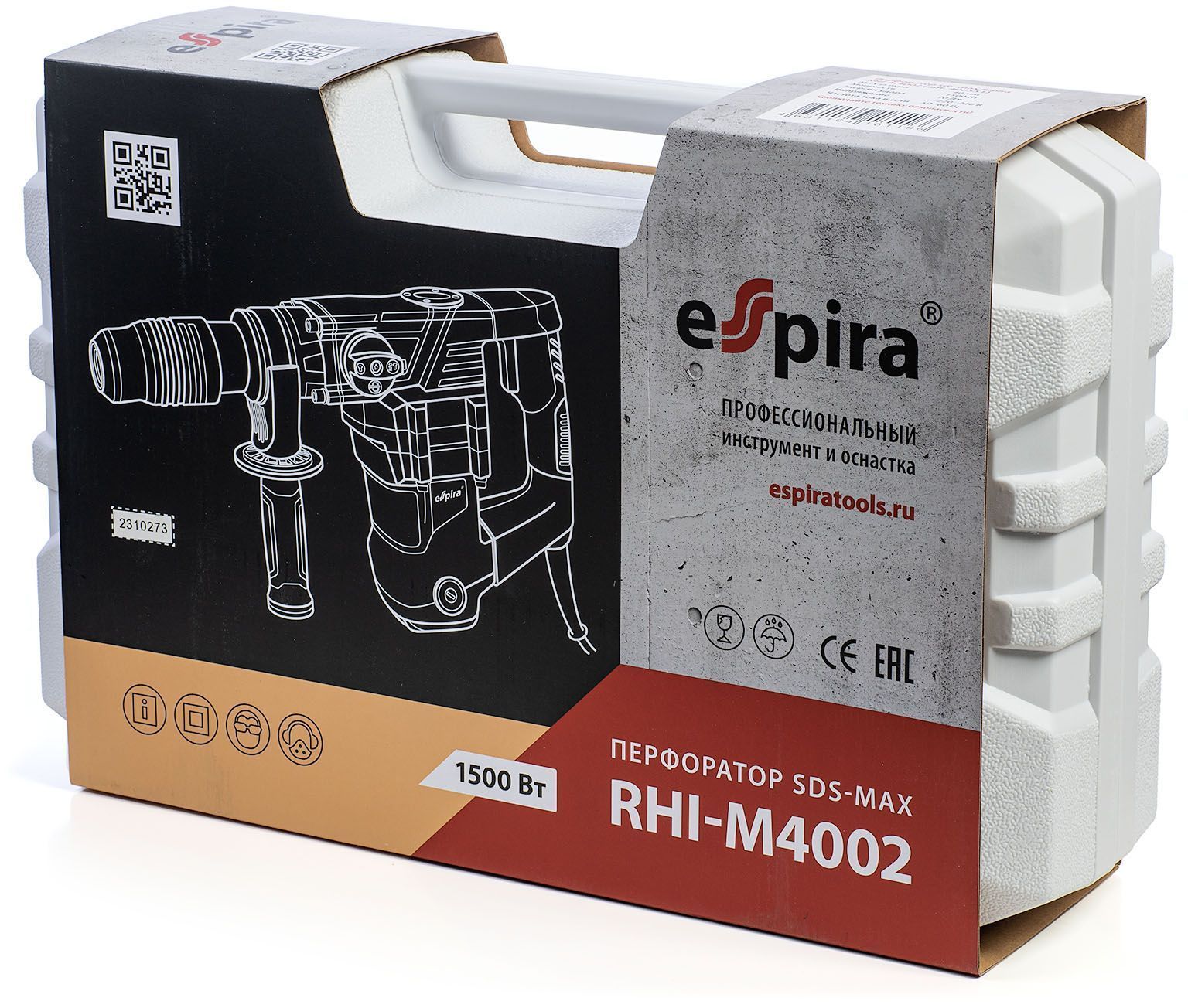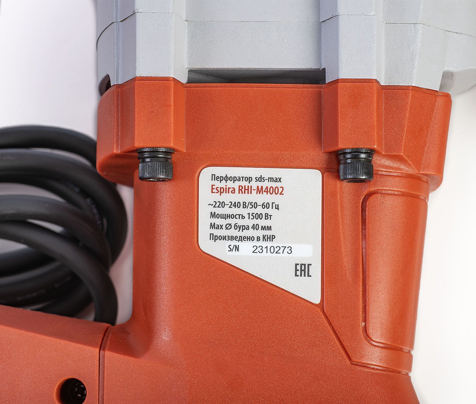Перфоратор Espira RHI-M4002 sds max 220 – 240 В/50 Гц, мощность 1500 Вт, эн.удара 10 Дж, вес 7.2 кг,