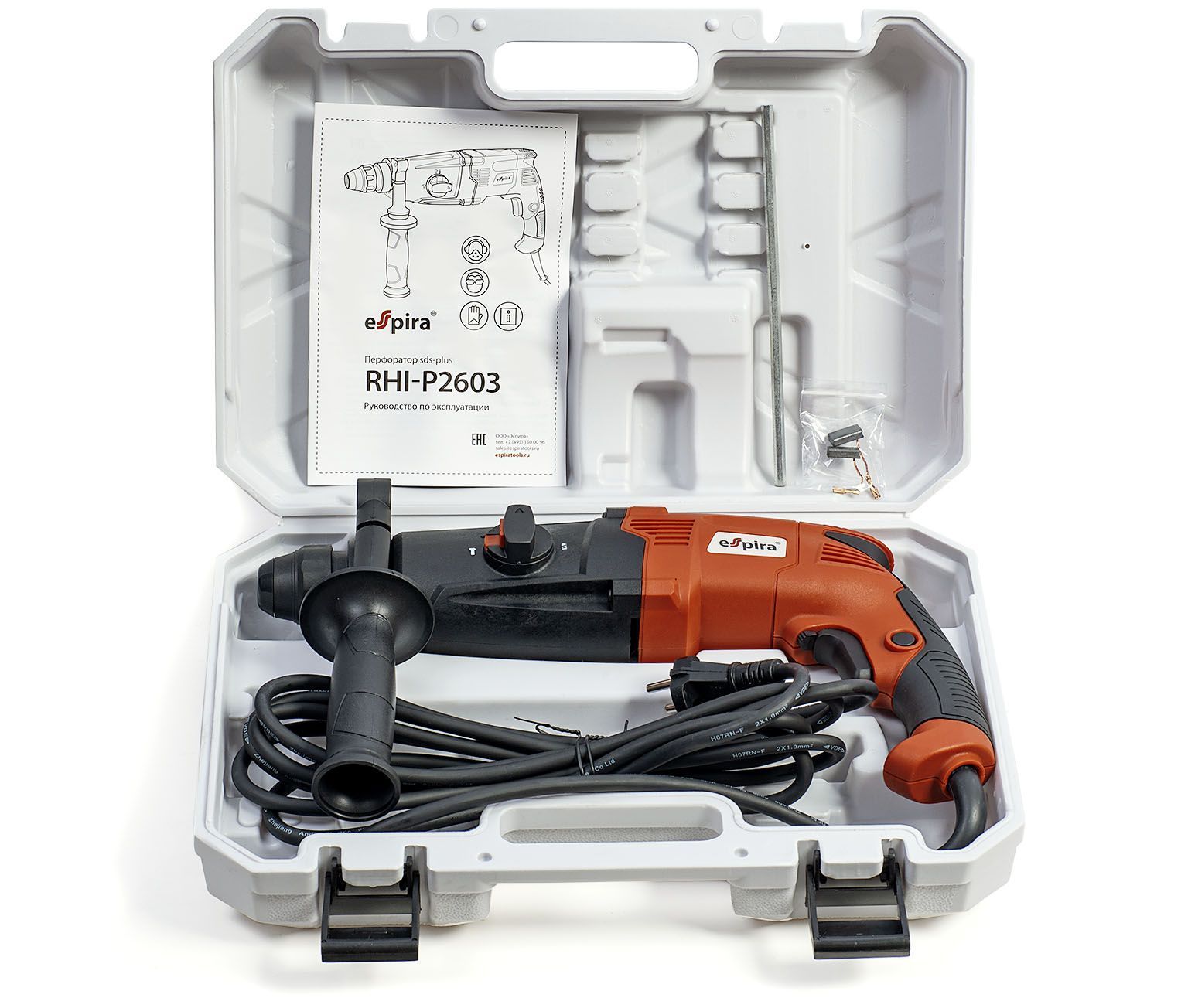 Перфоратор Espira RHI-P2603 sds plus 220–240В/50Гц, мощн. 800 Вт, 0-1180 об/м, эн.уд. 3,2 Дж, вес