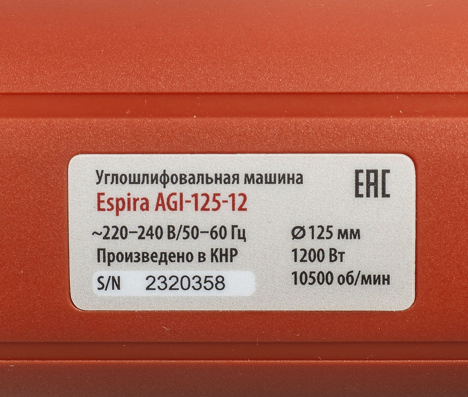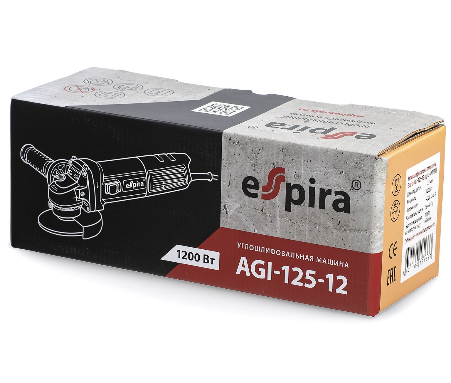УШМ Espira AGI-125-12 125 мм 220-240В, 50/60 Гц, мощность 1200 Вт, 10000 об/мин, 2.4 кг