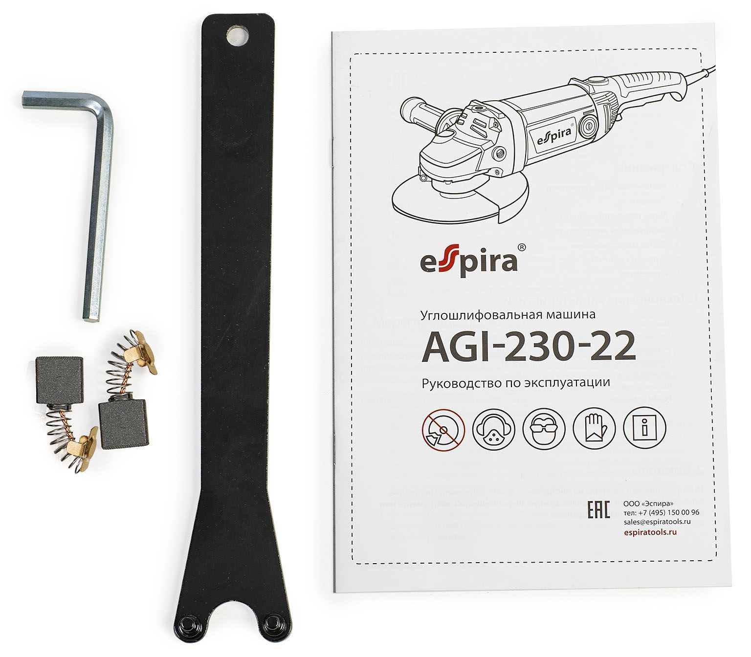 УШМ Espira AGI-230-22 230 мм 220-240В,50/60 Гц,мощность 2200Вт, 6600 об/мин, 5.6 кг