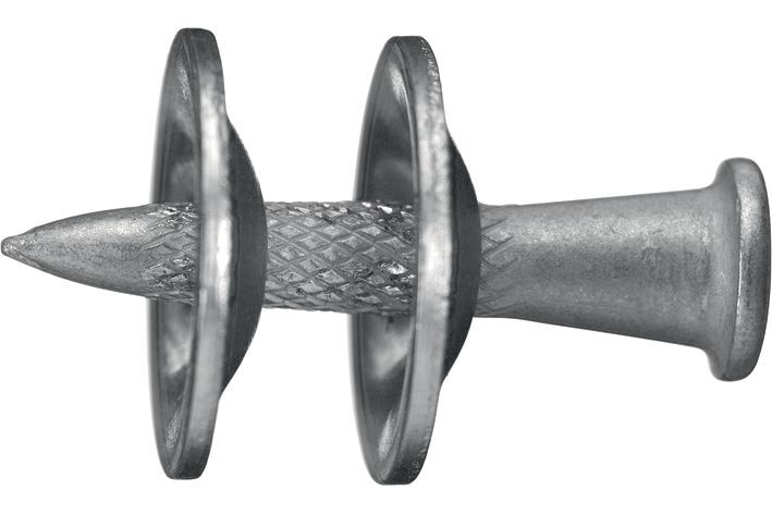 - Образует систему с Hilti DX 76-PTR для оптимального крепления к анкерным рельсам HTU, стальным балкам и другим подконструкциям толщиной 3–6 мм